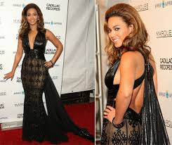 Noossa, a Bey arrasou com esse decotão e essa capa estilo super-herói. Note que o vestido acompanha o formato do corpo dela,uma boa pedida para quem está em dia com a balança.
